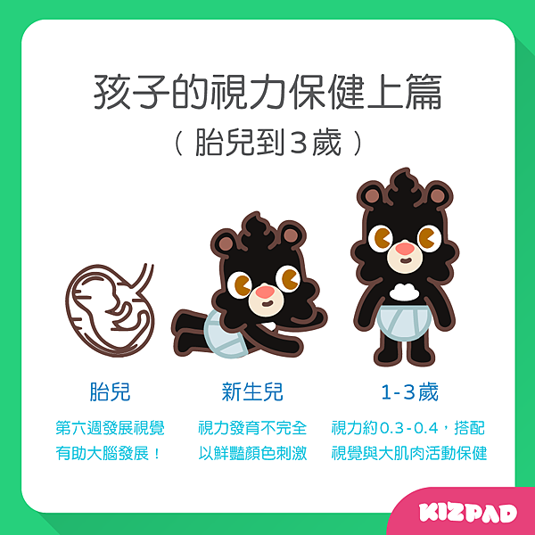 視力小保健: 這個時期孩子的視力正在發展的階段,因此多讓孩子接觸色彩繽紛的遊戲、書籍,是有助於孩子視力的發展,但請注意需要讓孩子適時的休息眼睛,每30分鐘,就要休息一次眼睛喔!