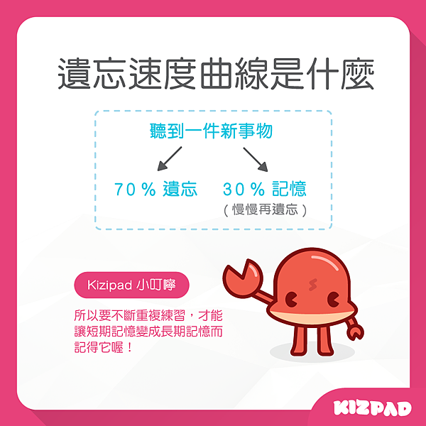 你知道人類有一個遺忘速度曲線嗎? 當遺忘產生,一開始人會很快速度一次遺忘掉70%聽到或是讀到的東西,之後遺忘曲線速度開始減緩,剩下的30%則是以緩慢的速度被遺忘。